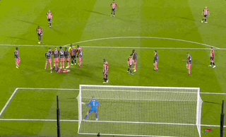 恰巧的是,托尼重新摆球时,排在森林人墙最靠边的耶茨刚好转过身跟自己的门将马特·特纳交流如何封堵近门柱位置,他们还特意安排了一名球员在人墙后面卧草封堵地滚球。但结果没有一名森林球员向裁判报告托尼的小动作违规,而最终,正是因为托尼把球往右一摆,取得了打入近角的射门通道。