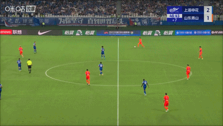 全场比赛结束,申花3-3战平泰山。